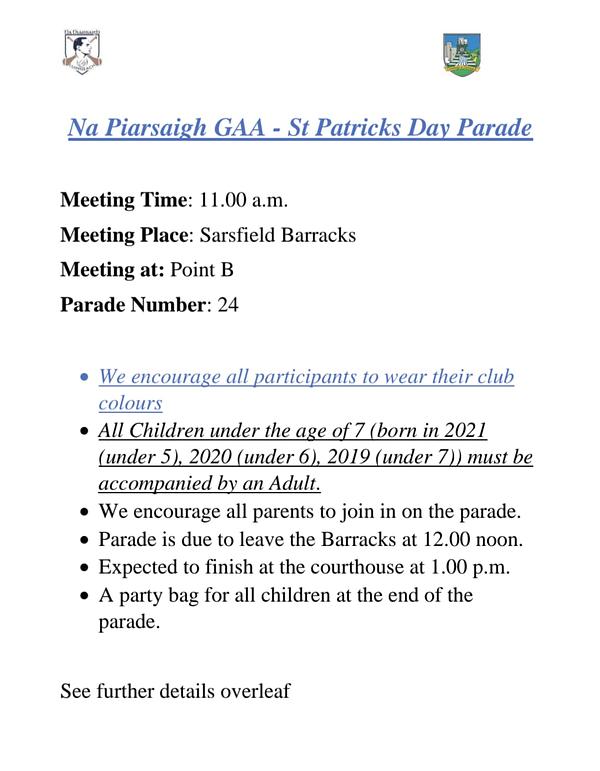 The parade route follows down O’Connell Avenue, The Crescent, O’Connell Street, turns left onto Glentworth Street, turns right onto Henry Street, continues down Henry Street, onwards to Liddy Street and Arthur’s Quay Park.